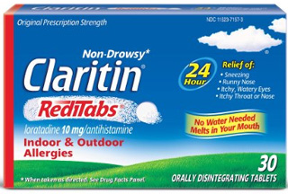 Administration of CLARITIN REDITABS (loratadine rapidly-disintegrating tablets): Place CLARITIN REDITABS (loratadine rapidly-disintegrating tablets) on the tongue. Tablet disintegration occurs rapidly. Administer with or without water.STORAGE